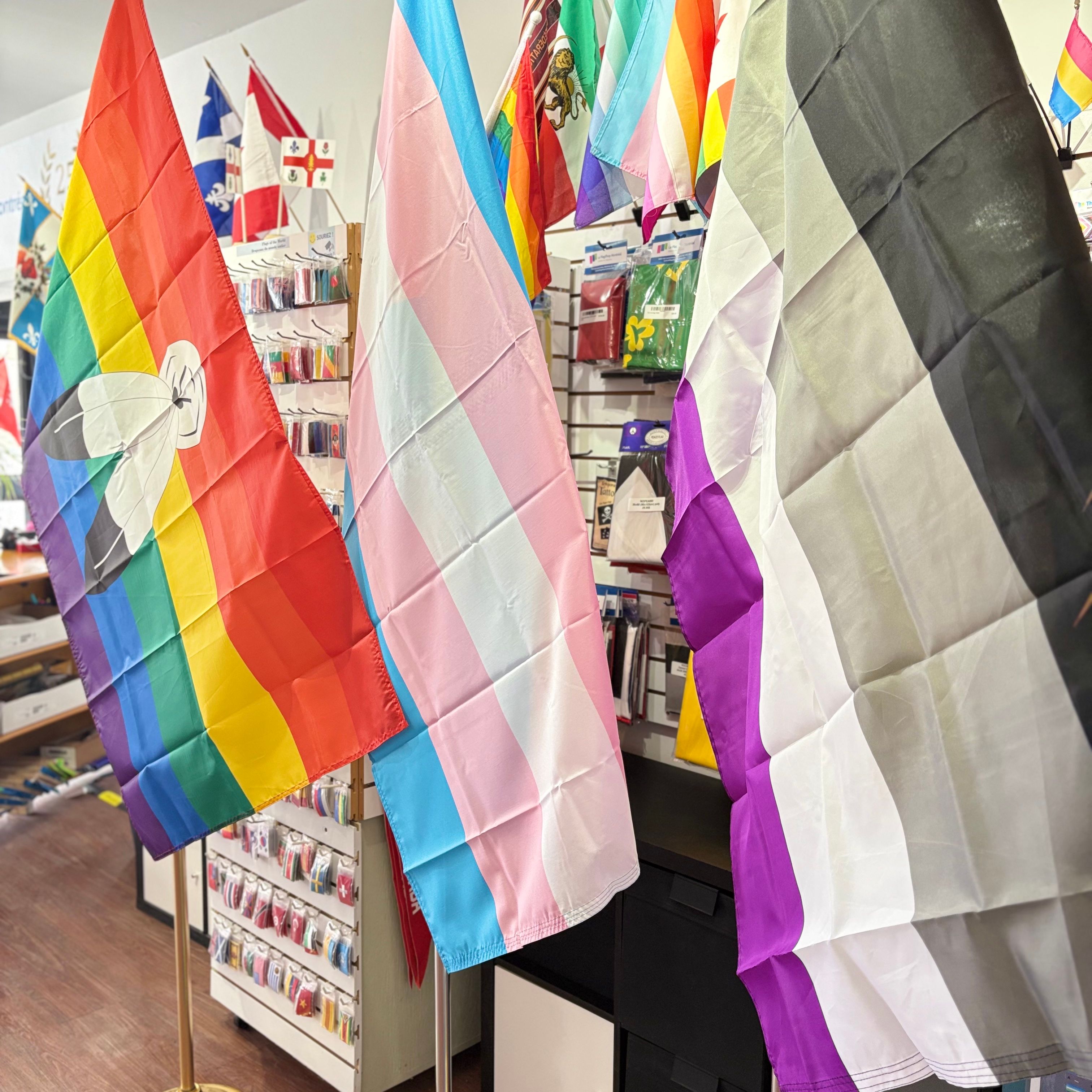 Buy from the Pride Collection at Le FlagShop Montreal, your trusted destination for Pride flags, embroidery patches, pins, keychains, and buttons designed to represent diversity, inclusion, and identity with impact.